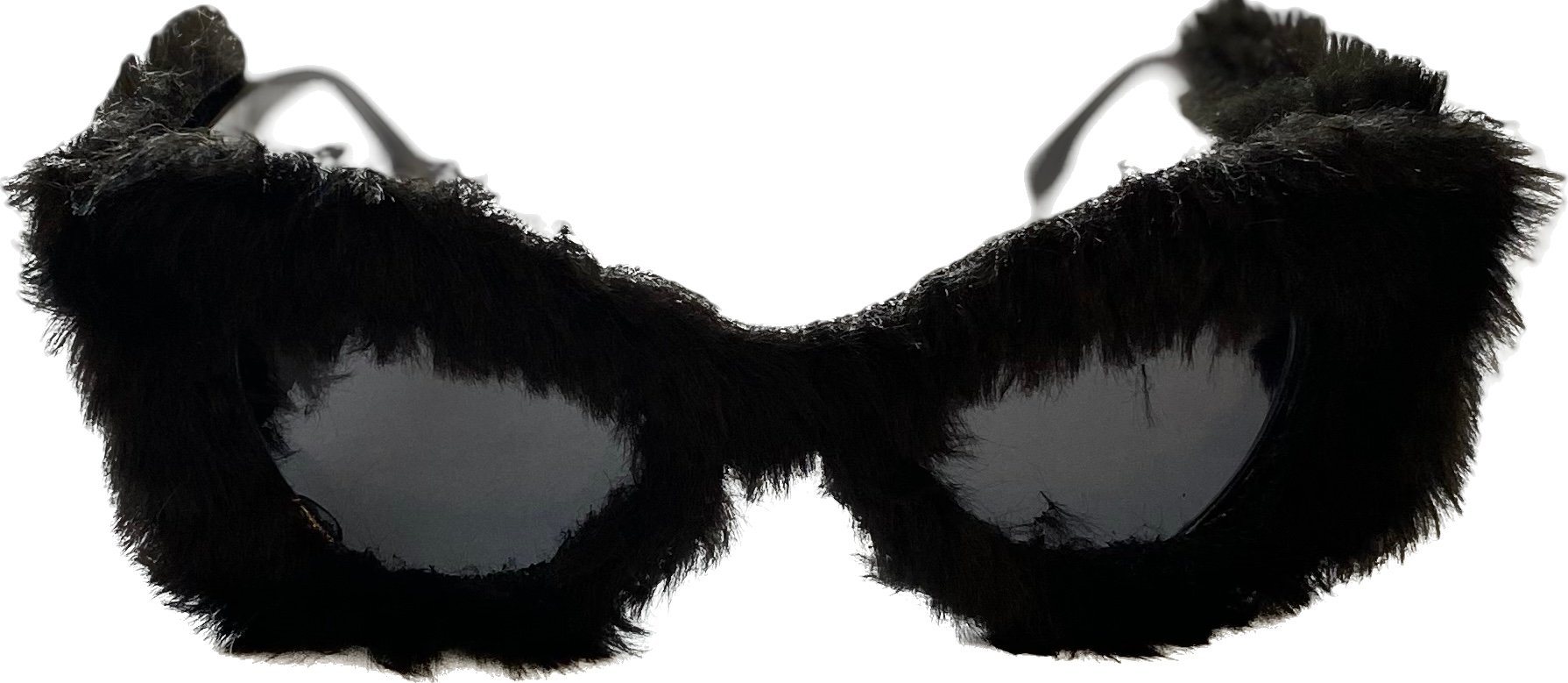 Faux fur accented cat-eye frames, mixing vintage glamour w/modern flair.